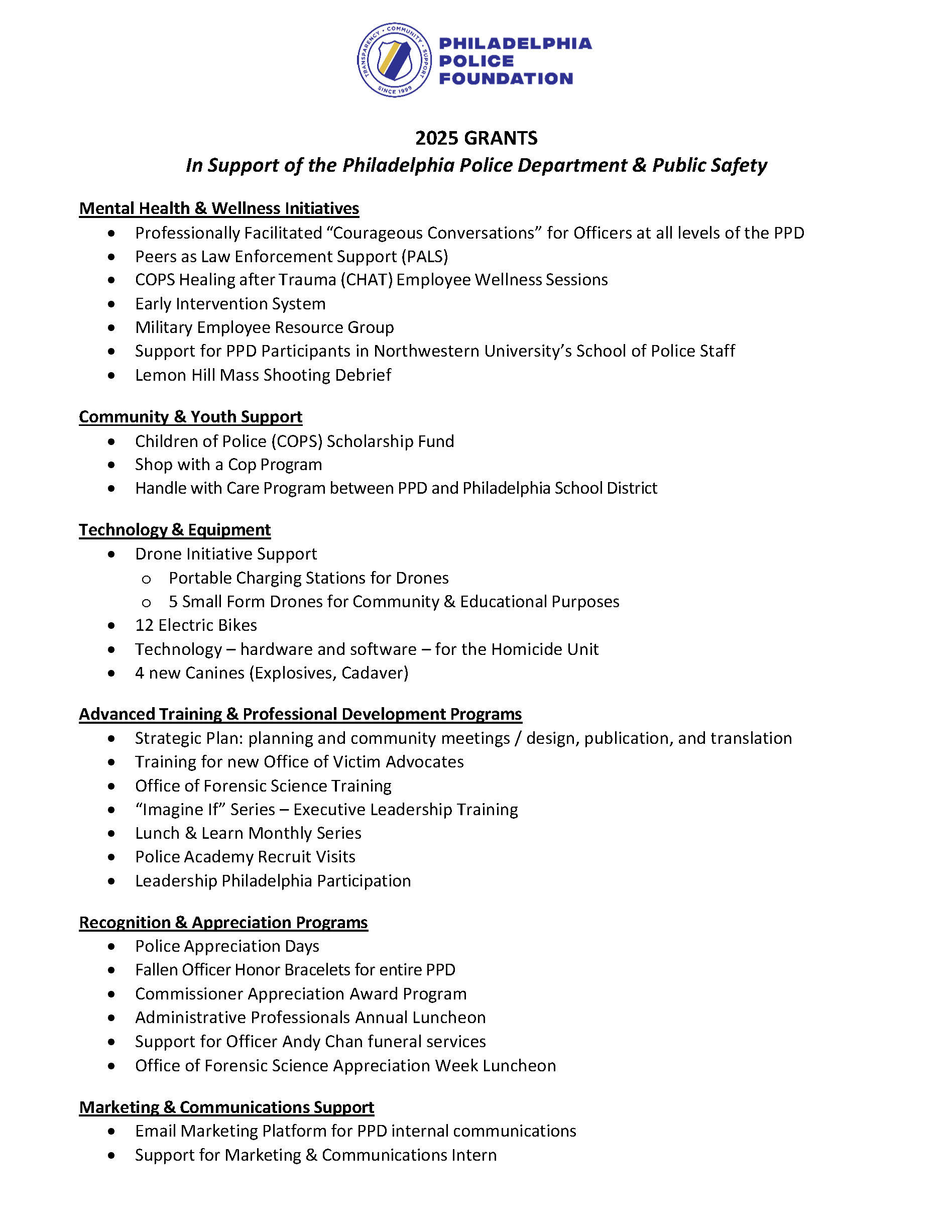 Letter from the Philadelphia Police Foundation